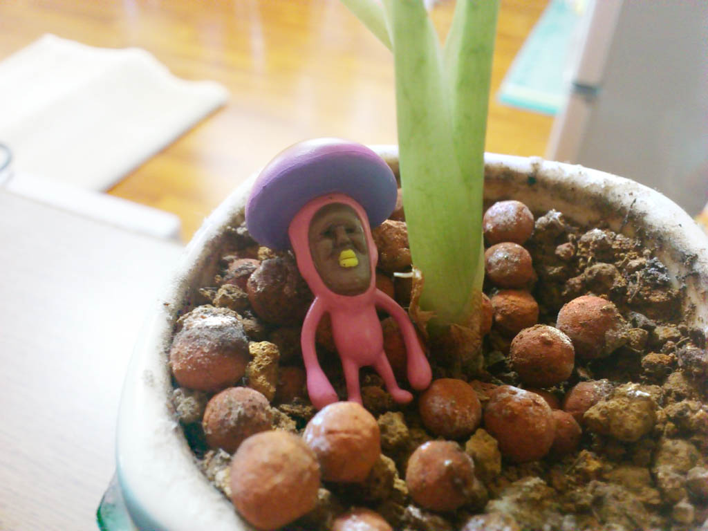 コメント 室内の植木鉢にて、カラフルなこびと発見!!!