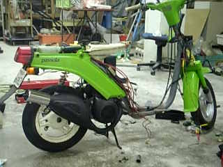 | コメント | 右側ハンドルスィッチをに後期型パッソ―ラセル付きのハンドルスィッチに交換致しました!初期型パッソーラはエンジン始動キック式でハンドルスィッチにセルボタンは無いので、ジョグエンジンのセルスターター機能を活かしたいので後期型パッソーラエレクトリックのセル付きスイッチに交換致しました!感想ですが、セルを押すとセルリレーはカチっとなりますがセルモーターが回らないのでモーターの故障かな?と思い点検したところ、3,50?10タイヤ装着の際セルモーター固定ネジがタイヤに接触するのでセルモーターを取外した事を忘れていました!セル用の高アンペアの電気が使えますので社外ホーン用かフォグランプ用に流用するかコネクターを差し替え加工してパッシングライト用に使おうと思います! |