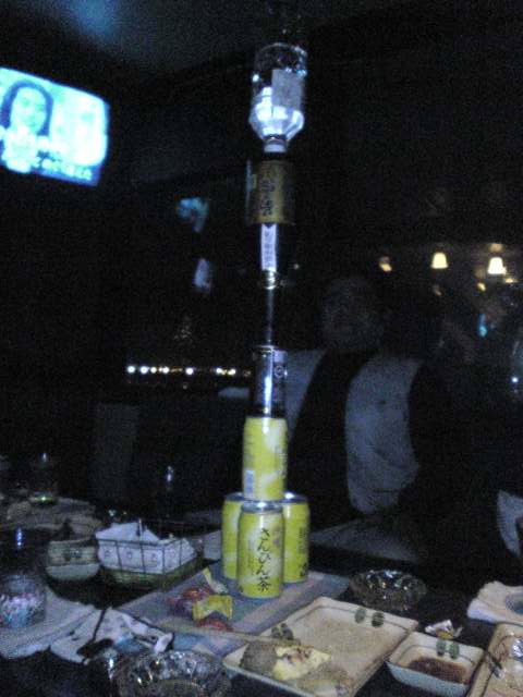 タイトル 酒ビン逆タワー!天井に付きそう…。