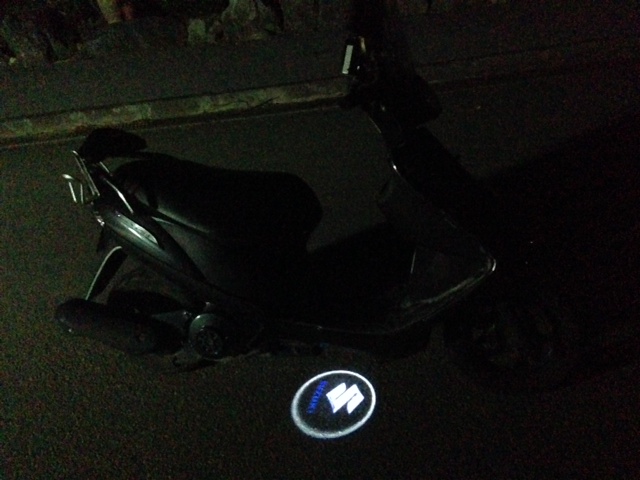 南部さん>車用の部品です。ドアを開けると点灯するLEDライトをバイクの下に付けました