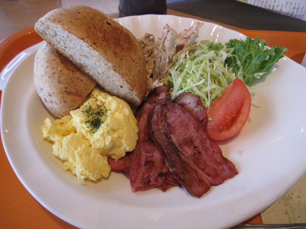 やわらかくバター風味が香ばしい胚芽パンにベーコンやスクランブルエッグ、ごぼうサラダにお野菜をサンドしてオリジナルサンドにしてみました。朝日を浴びながらエナジーチャージできるスポットなのでおススメです☆ |